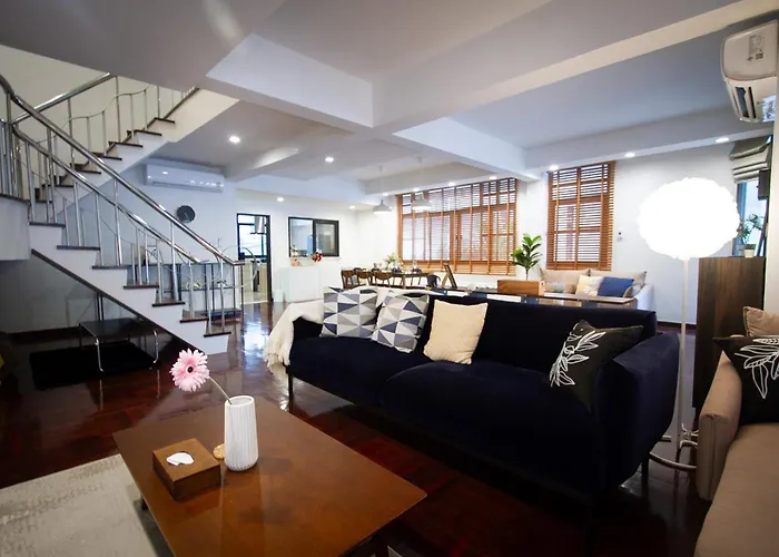 Deze 4-slaapkamer Spacious 4-Bedroom Oasis In The Heart Of Sukhumvit Bangkok villa heeft gratis privéparkeerplaatsen en ligt in de wijk Khlong Toei in Bangkok en op 6 km afstand van culturele bezienswaardigheden zoals Overwinningsmonument. De villa ligt op 10 minuten rjden van de Wijk Patpong en beschikt over een terras met uitzicht op de tuin.
